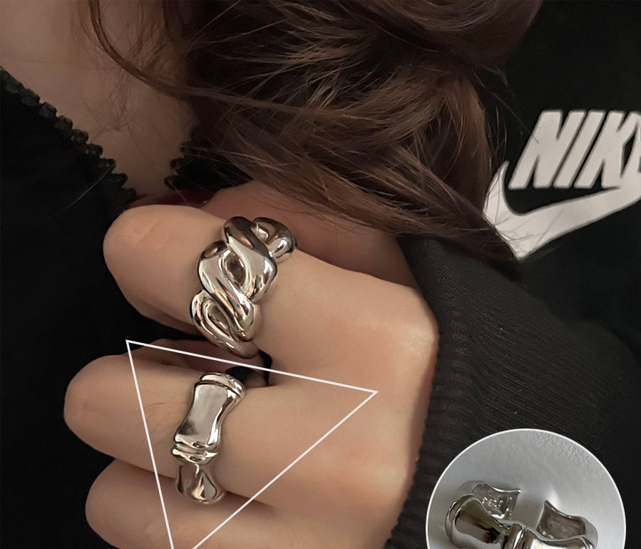 This sleek silver ring rocks edges and ridges to complement any chic style.