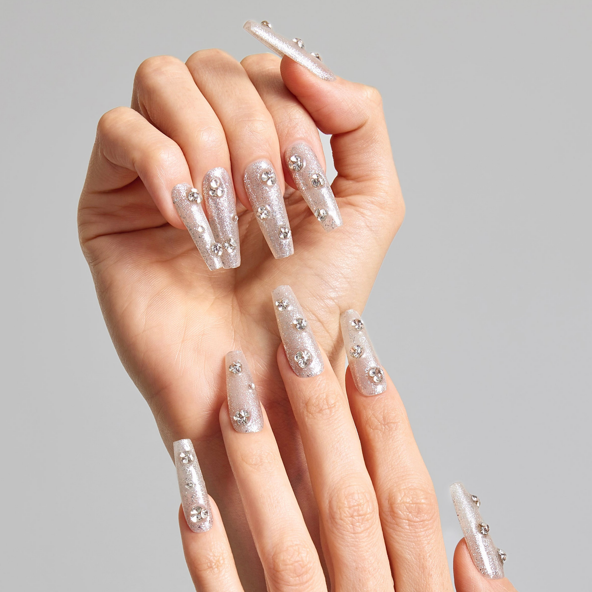 Place your press-on nails at a 45 degree angle 2mm away from your cuticles and push back.