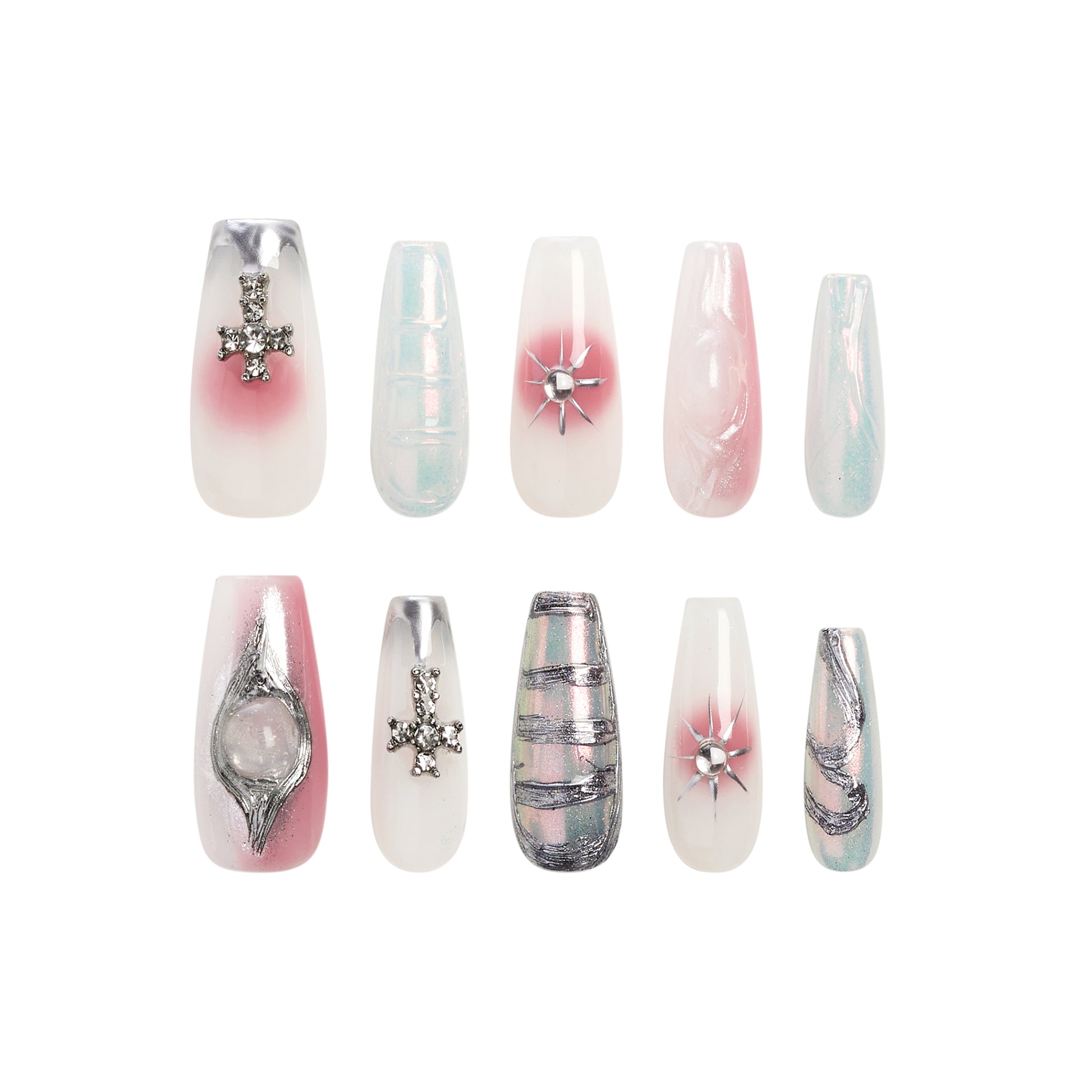 Place your press-on nails at a 45 degree angle 2mm away from your cuticles and push back.