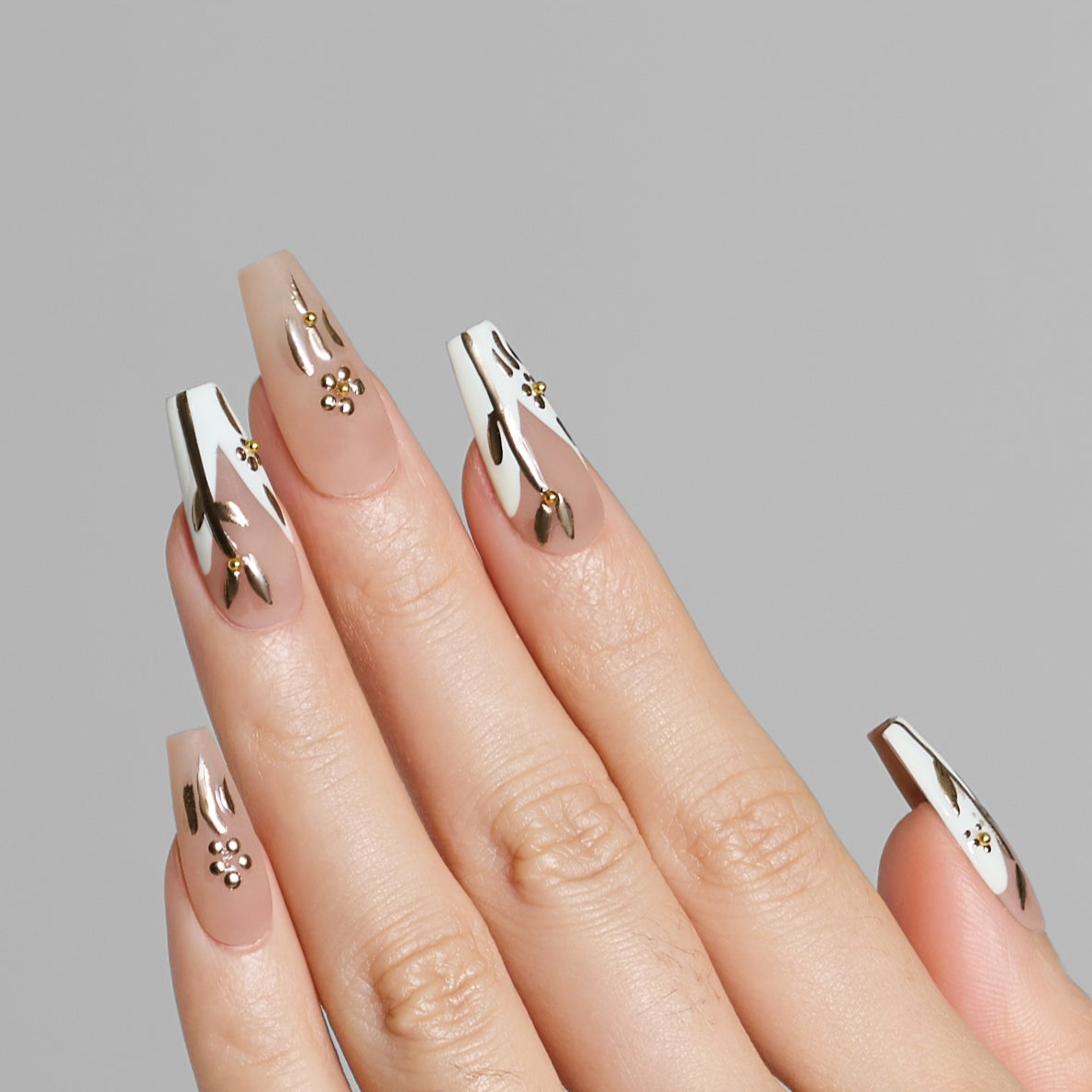 Place your press-on nails at a 45 degree angle 2mm away from your cuticles and push back.