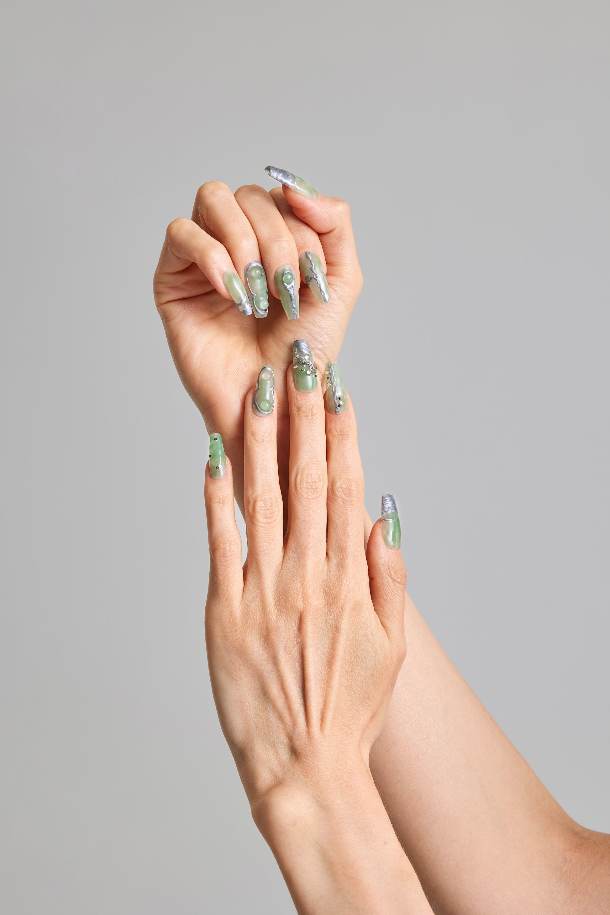 Place your press-on nails at a 45 degree angle 2mm away from your cuticles and push back.