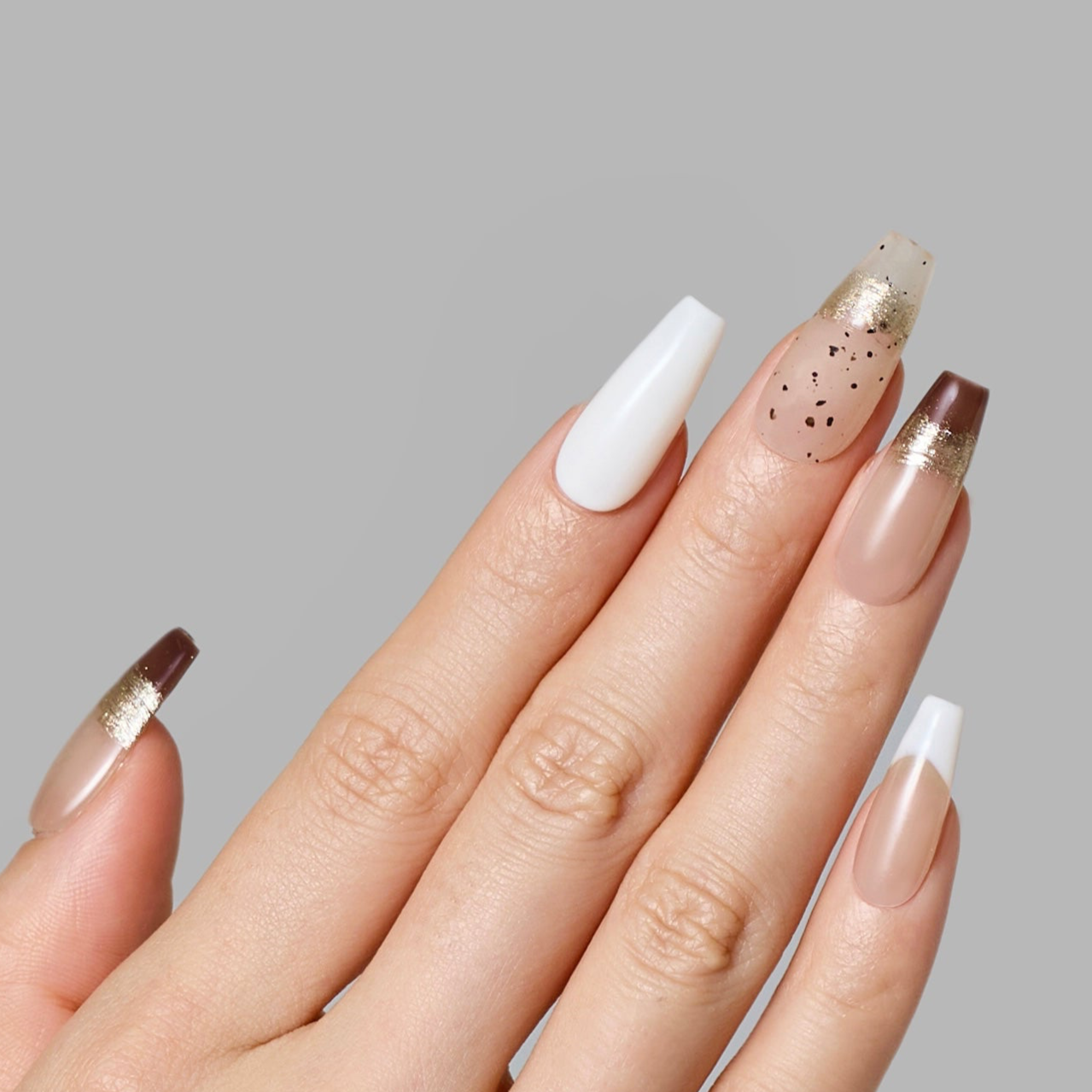 Place your press-on nails at a 45 degree angle 2mm away from your cuticles and push back.