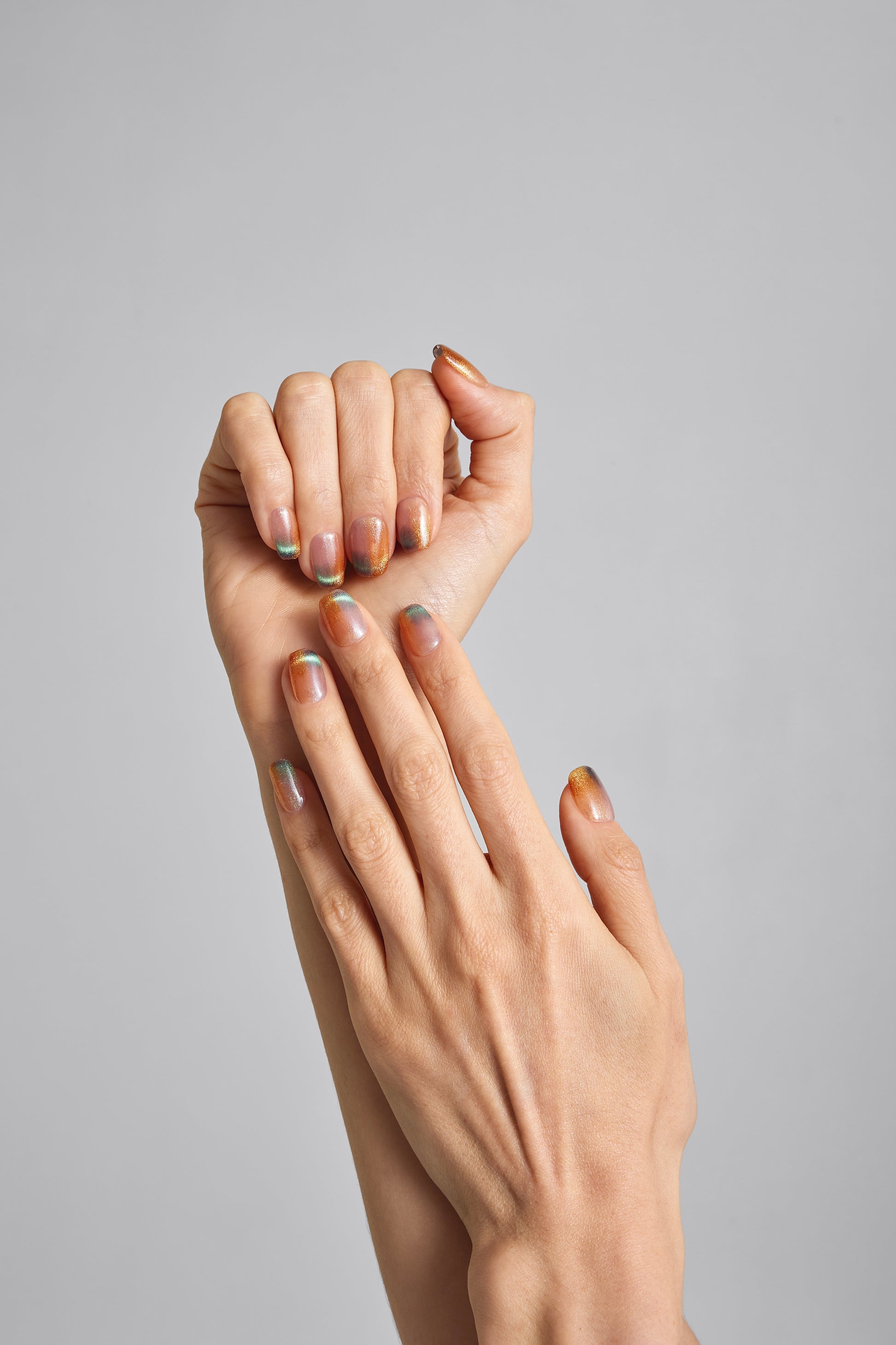 Place your press-on nails at a 45 degree angle 2mm away from your cuticles and push back.