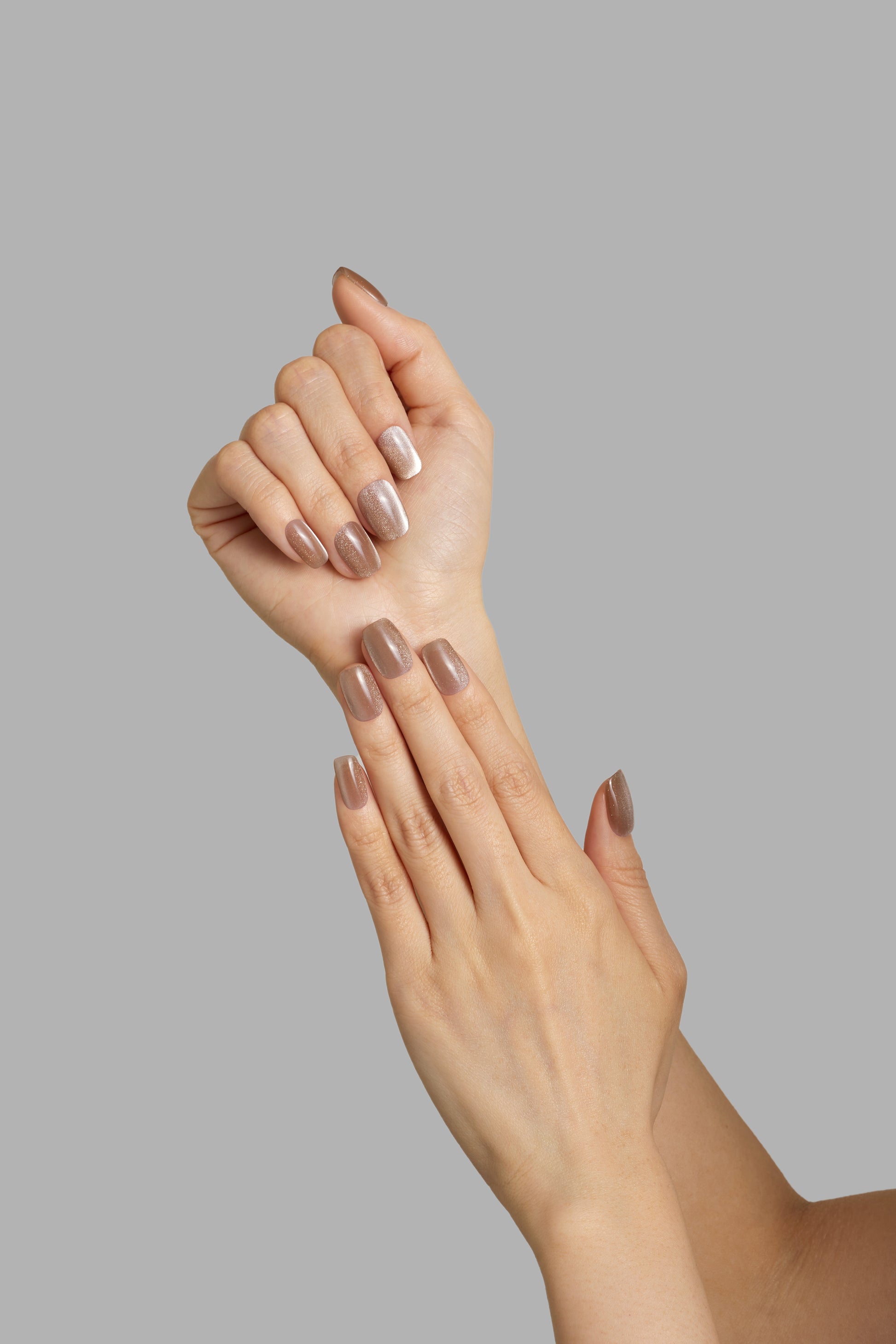 Place your press-on nails at a 45 degree angle 2mm away from your cuticles and push back.