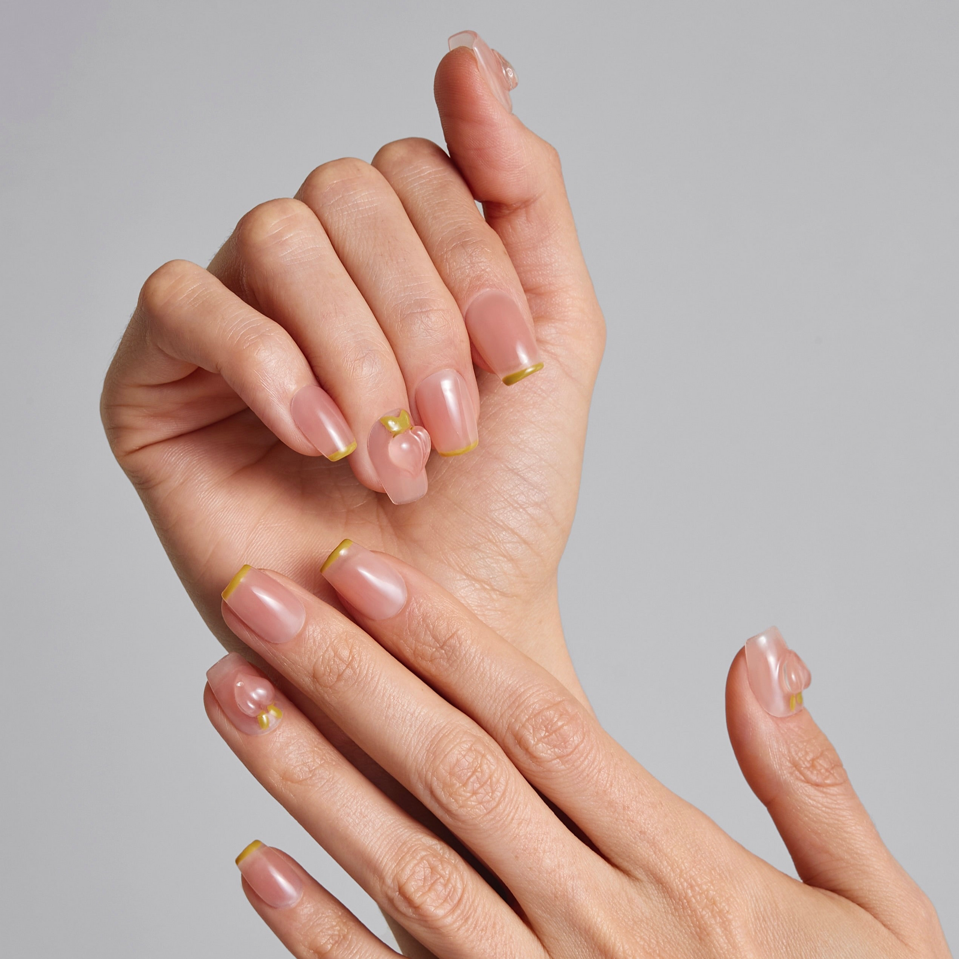 Place your press-on nails at a 45 degree angle 2mm away from your cuticles and push back.