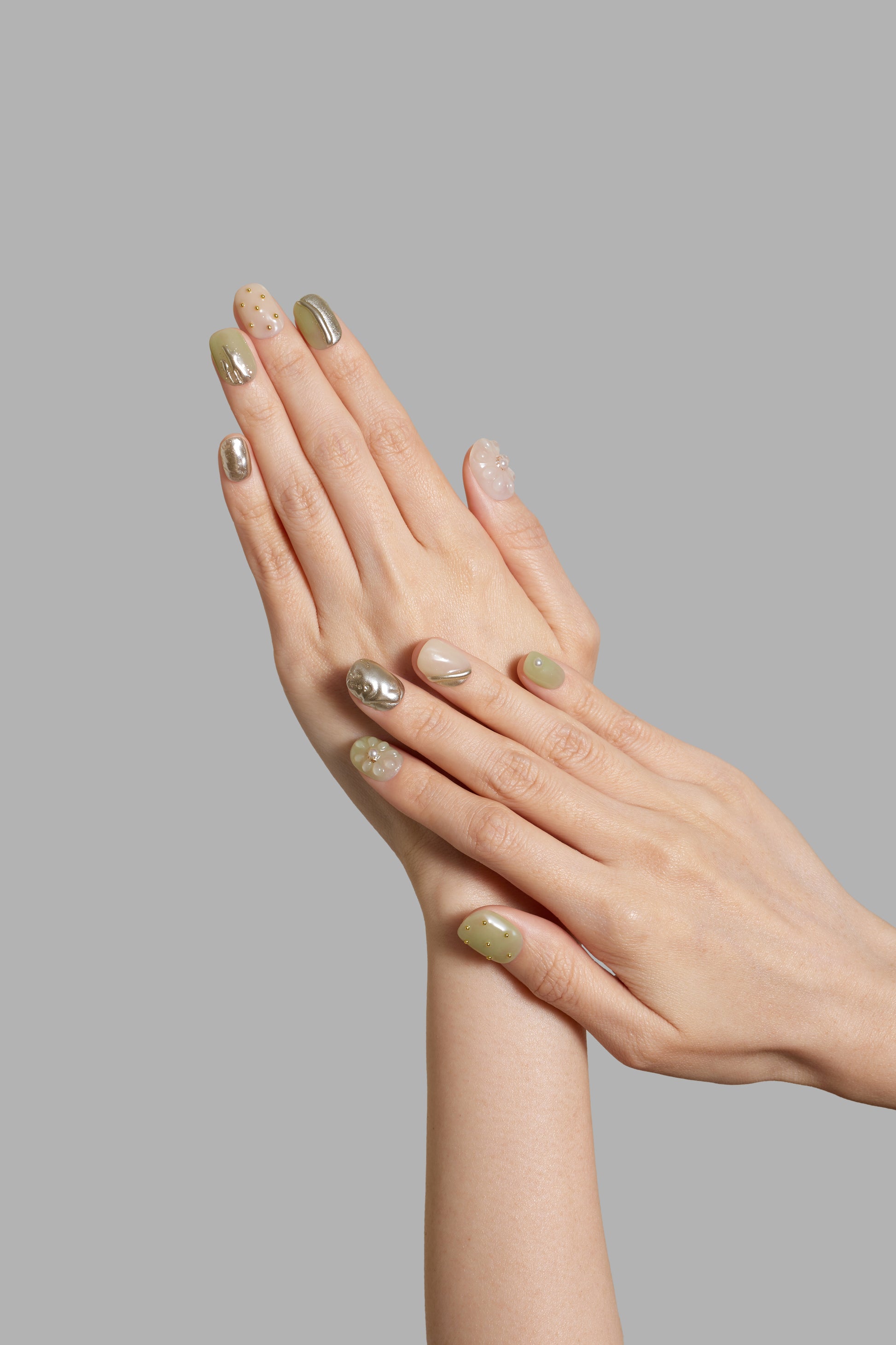 Place your press-on nails at a 45 degree angle 2mm away from your cuticles and push back.