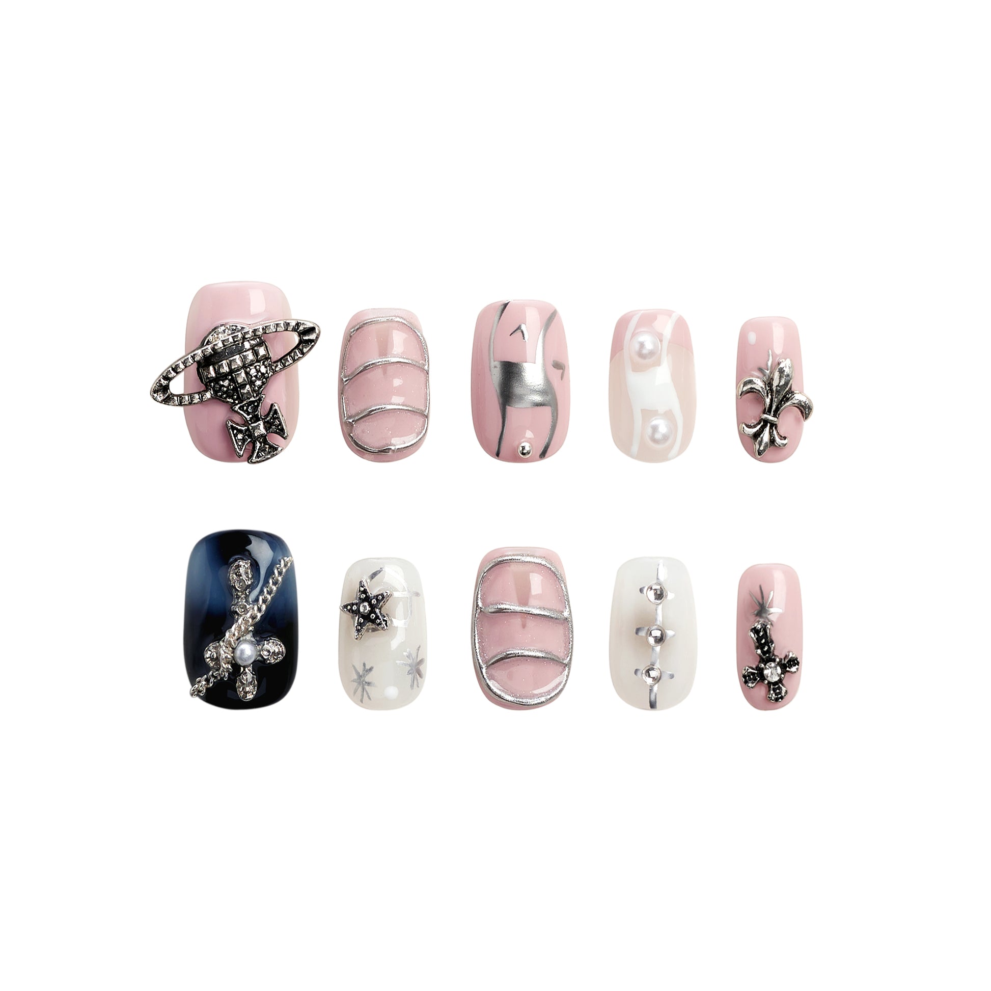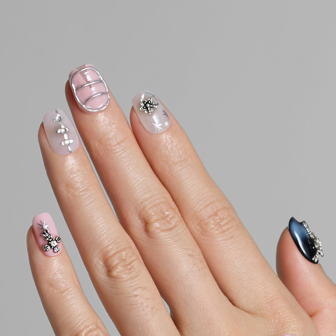 Place your press-on nails at a 45 degree angle 2mm away from your cuticles and push back.