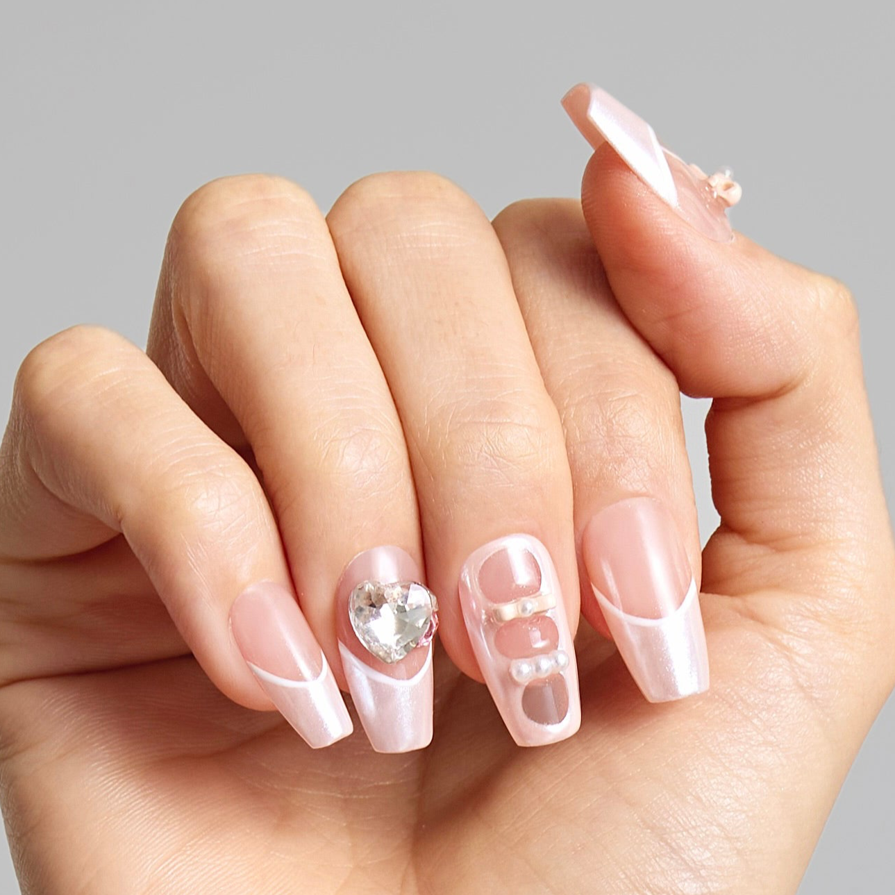 Blushing Elegance Adorned Nails